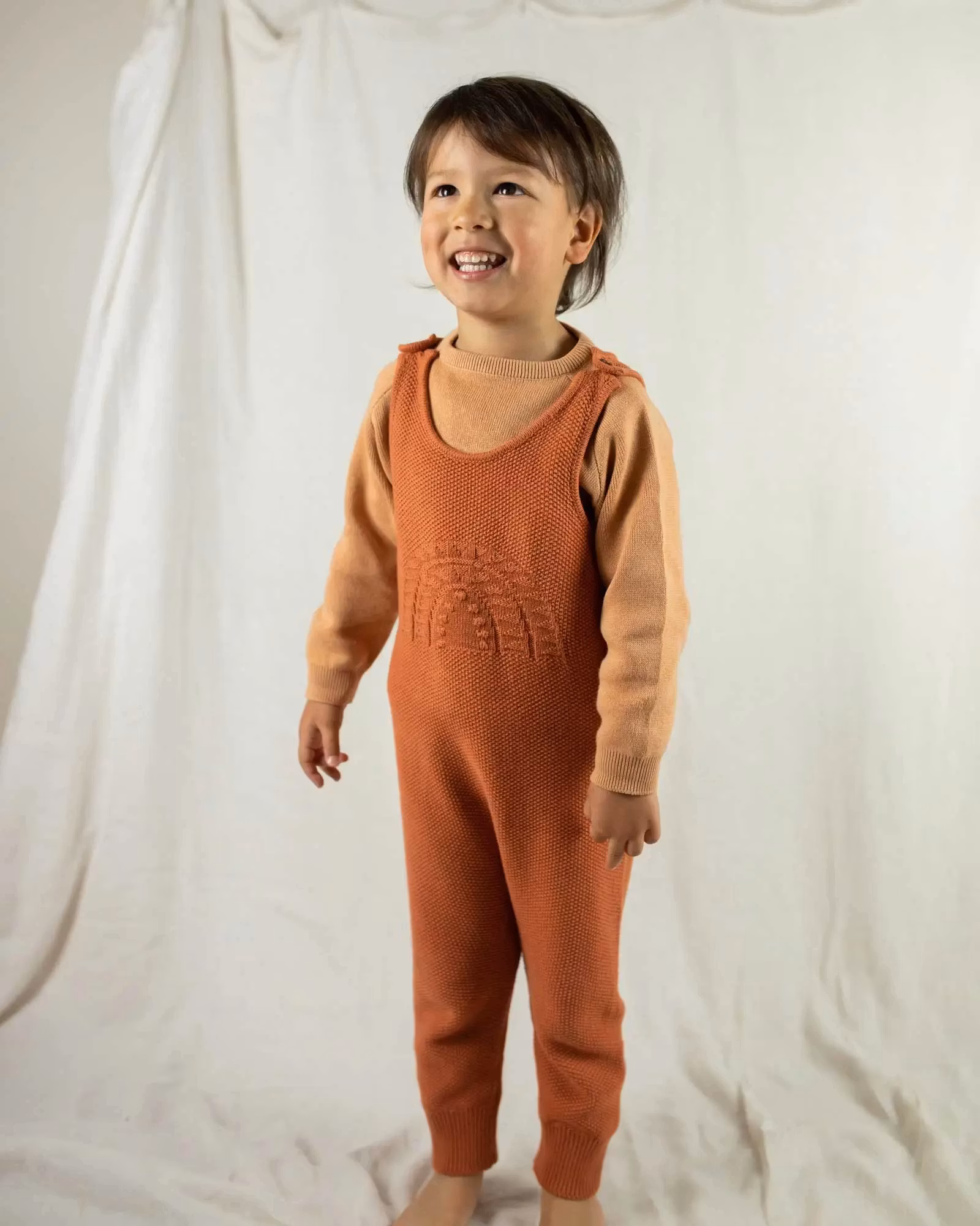 Søt selebukse med regnbuemotiv fra lal & nil. Sove, leke, sitte, løpe, - denne myke selebuksen gir barnet god bevegelsesfrihet og passer til alle barnets aktiviteter. Selebuksen er strikket i herlig, myk organisk bomull, og knappene er av kokosnøttskall. Style den med body og få et fint hverdagsantrekk, -style med bluse eller skjorte, og barnet er klar til fest!